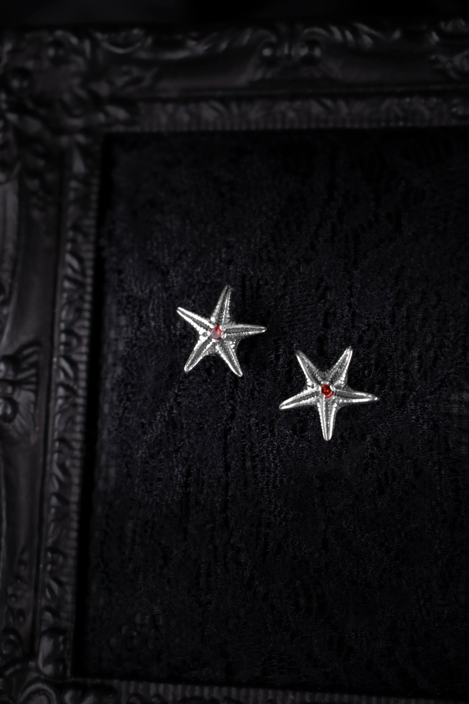 EKRJ1133 Handmade Sterling Silver Starfish Stud Earrings with Red Garnet Cubic Zirconia