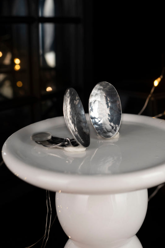 EKRJ980 Hares One-of-a-kind Handmade Silver Hoop Earrings