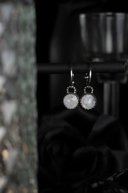 EKRJ979 Hares & Moonstone One-of-a-kind Handmade Silver Hoop Earrings