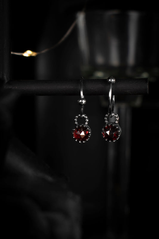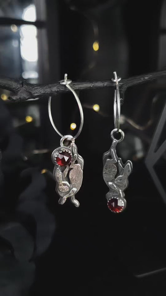 EKRJ976 Hares & Garnet One-of-a-kind Handmade Silver Hoop Earrings