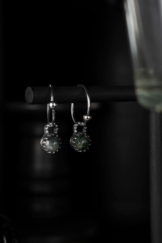 EKRJ1048 Cedar with Moss Agate Silver Hoop Earrings