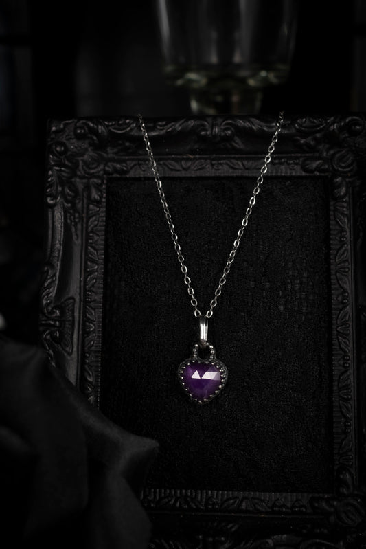 EKRJ1015 Handmade Silver Heart Pendant with Mozambique Red Garnet