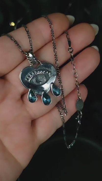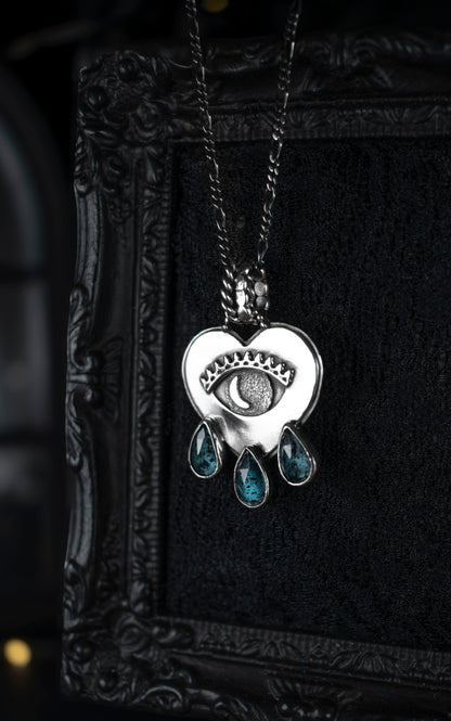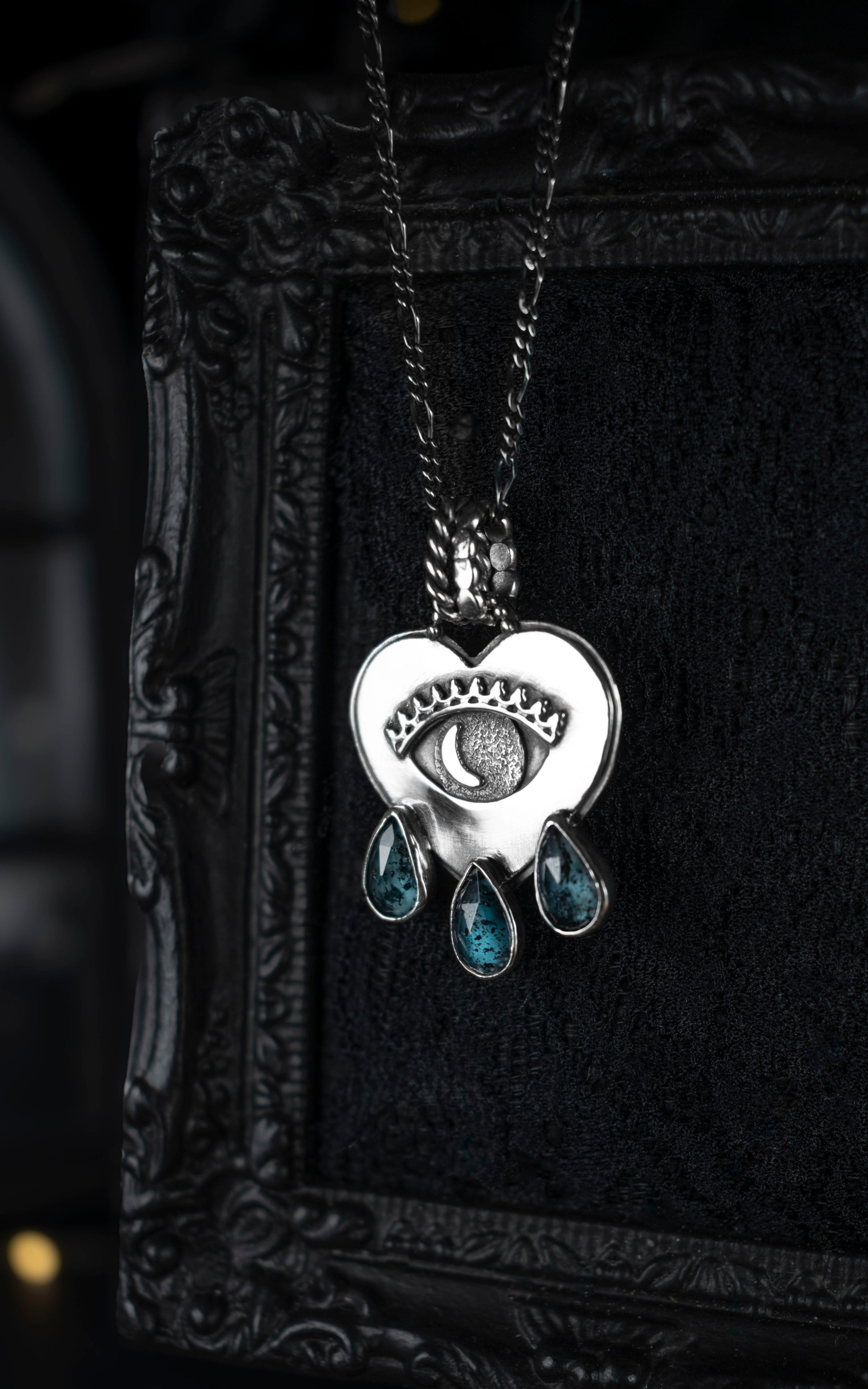 EKRJ1031 Mystic Heart of Tears One-of-a-kind Handmade Silver Necklace