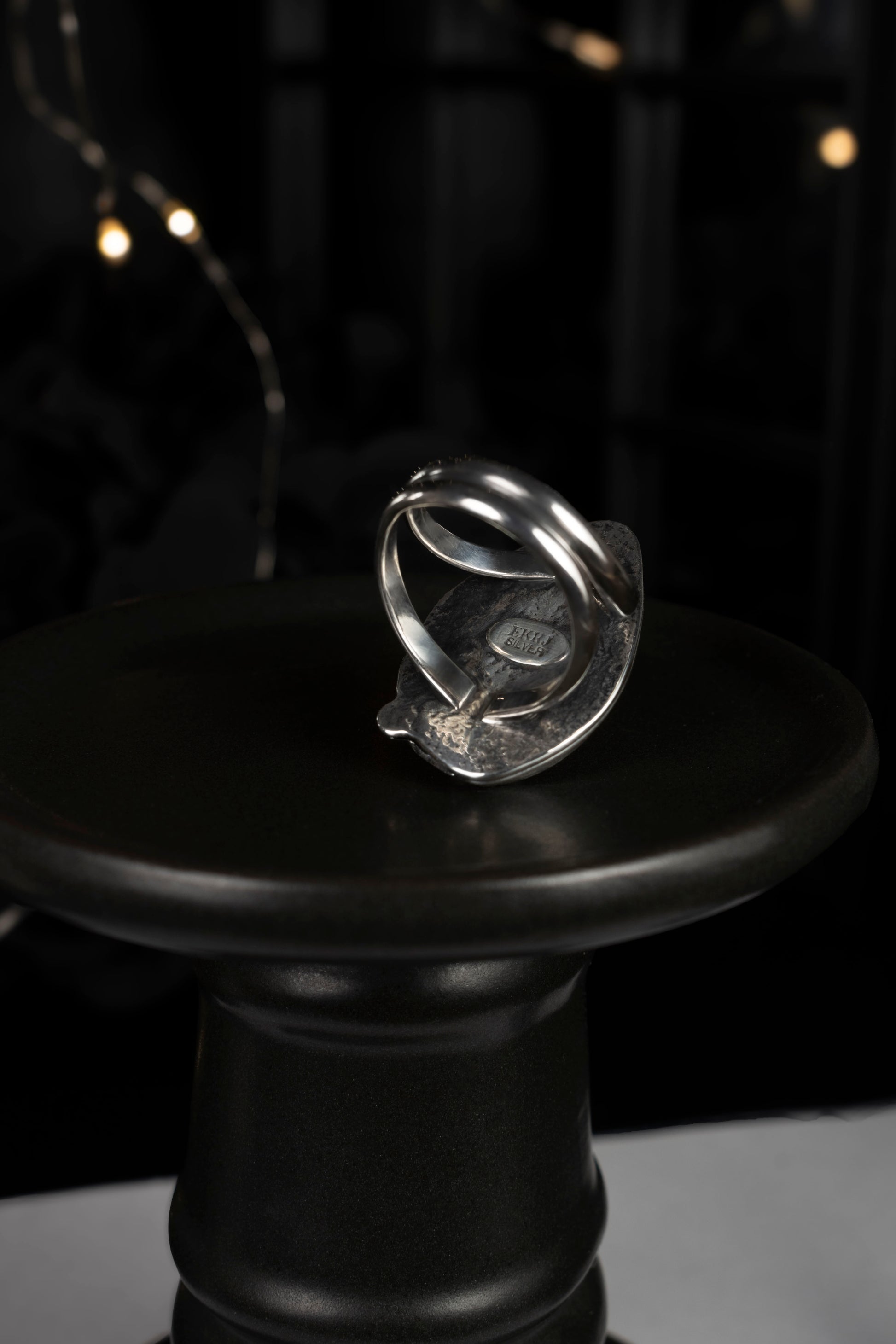 EKRJ1056 Heavenly Blue Sky Plume Agate One-of-a-kind Statement Silver Ring Size 8