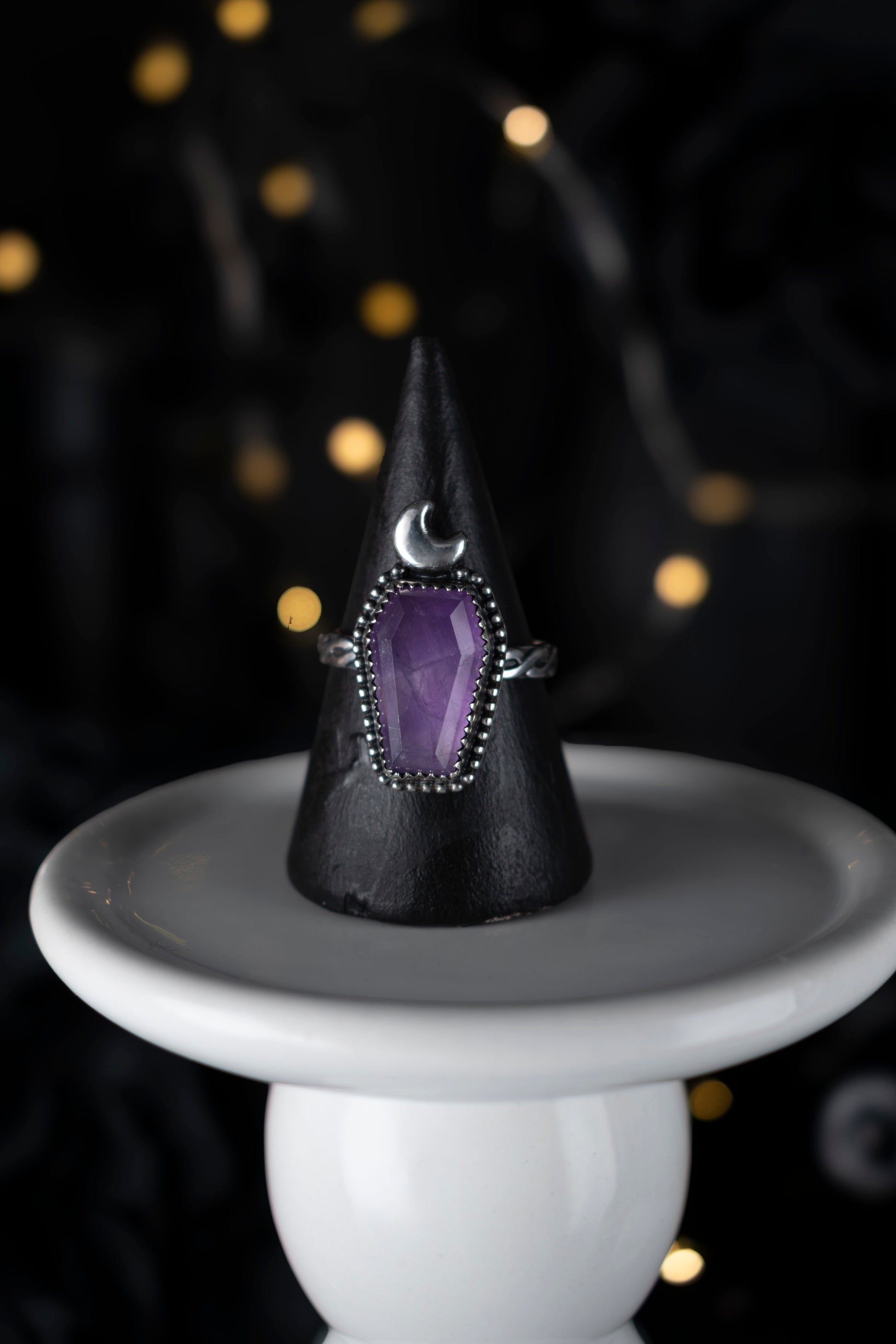 EKRJ1099 Handmade Amethyst Coffin Moon Silver Ring
