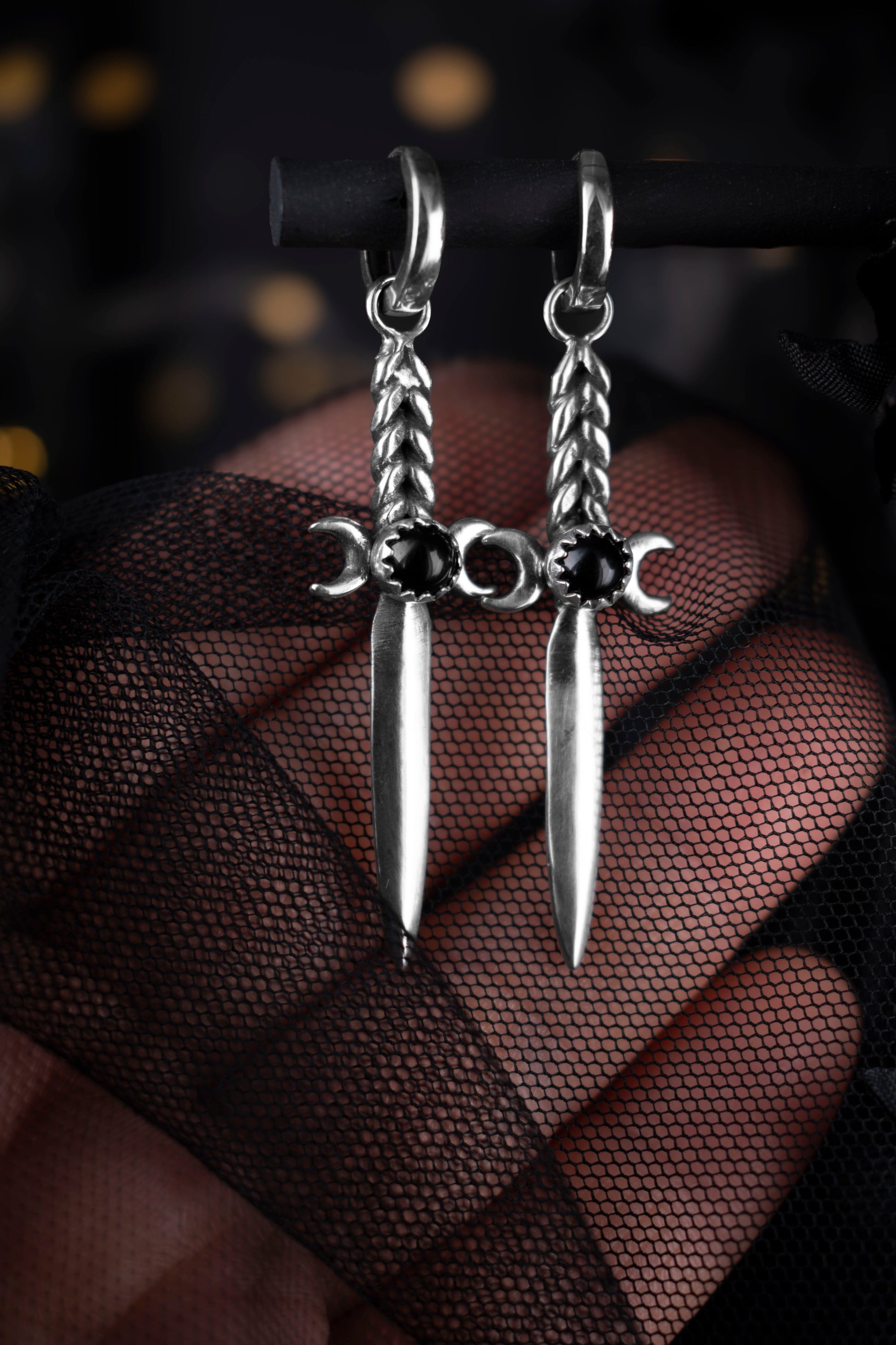 EKRJ1122 Handmade Silver Dagger Earrings with Black Onyx