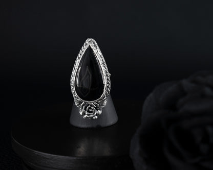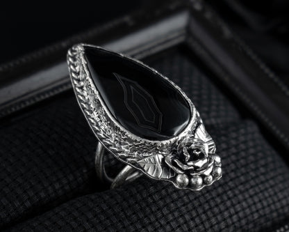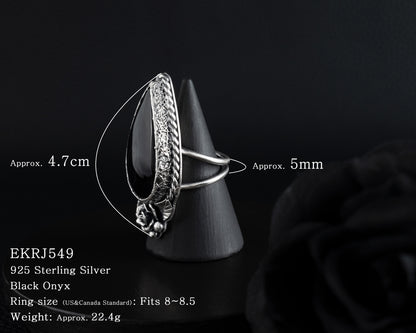 EKRJ549 Fits 8~8.5 Black Onyx Rose Bold One-of-a-kind Ring