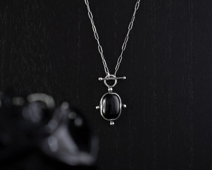 Not only is this necklace a stylish addition to your wardrobe, but it also carries with it the positive energy of the black onyx stone. Known for its ability to soothe stress and promote inner strength, wearing this necklace can help you feel more grounded and balanced throughout the day.