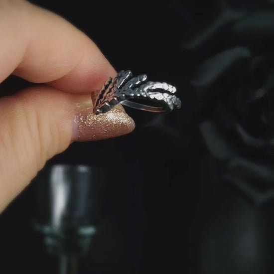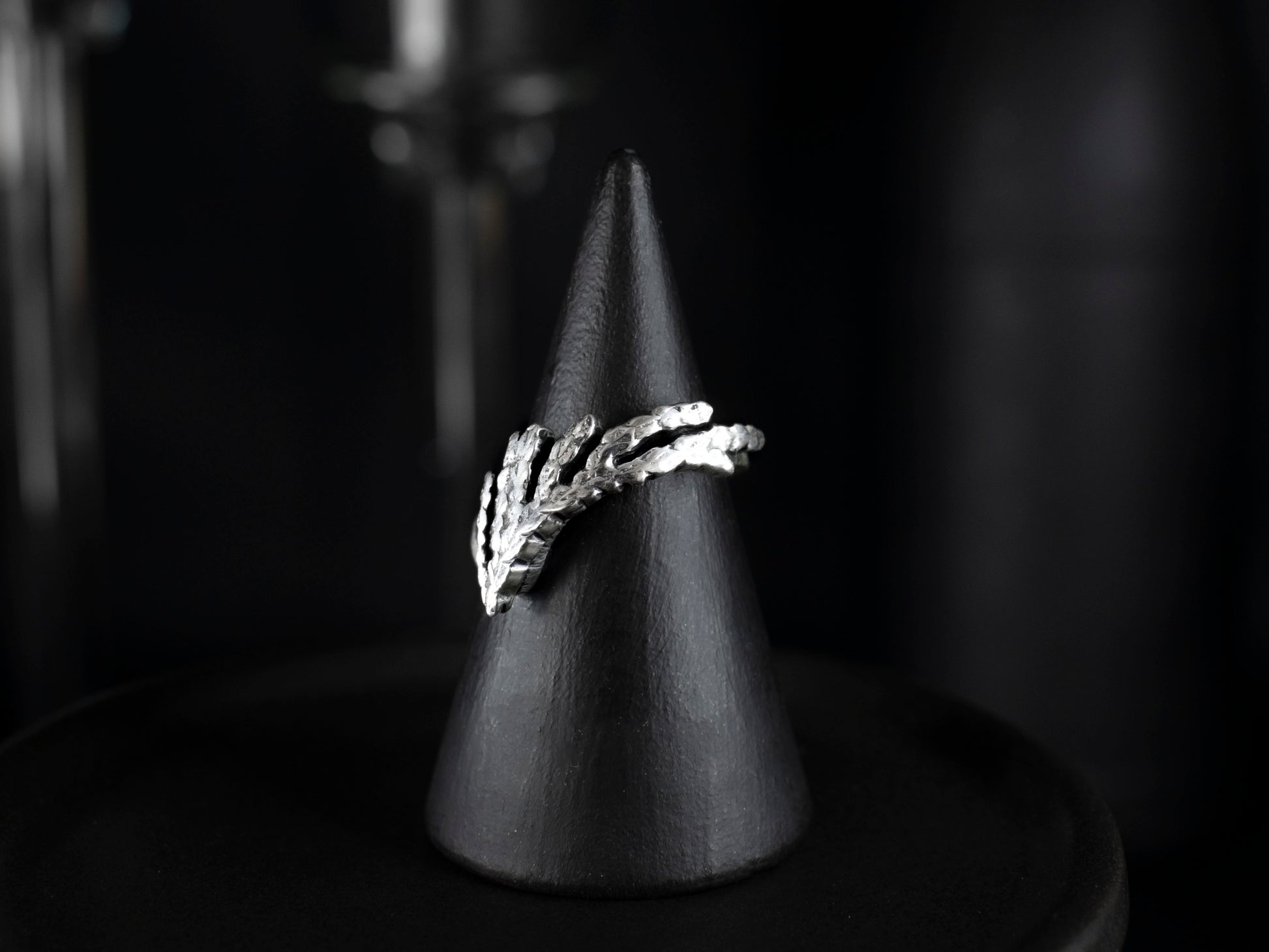 EKRJ827_Green Cedar Leaves One-of-a-kind Silver Ring
