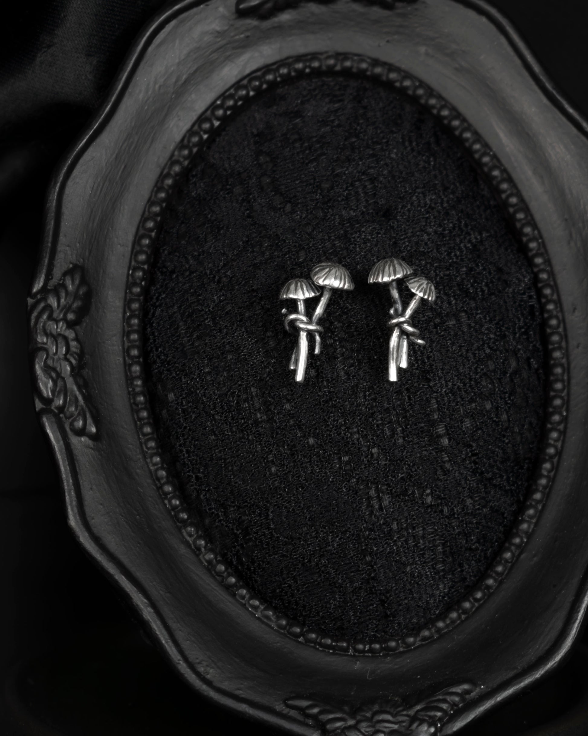EKRJ854 Fairy Inkcap Mushroom Motif Handmade Silver Earrings