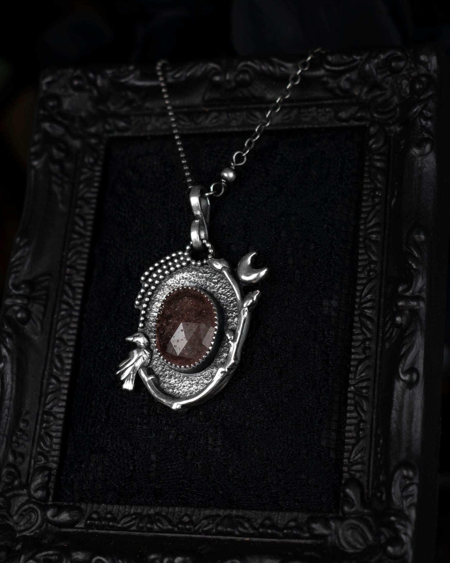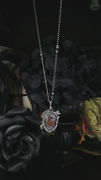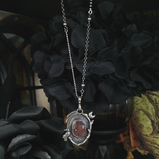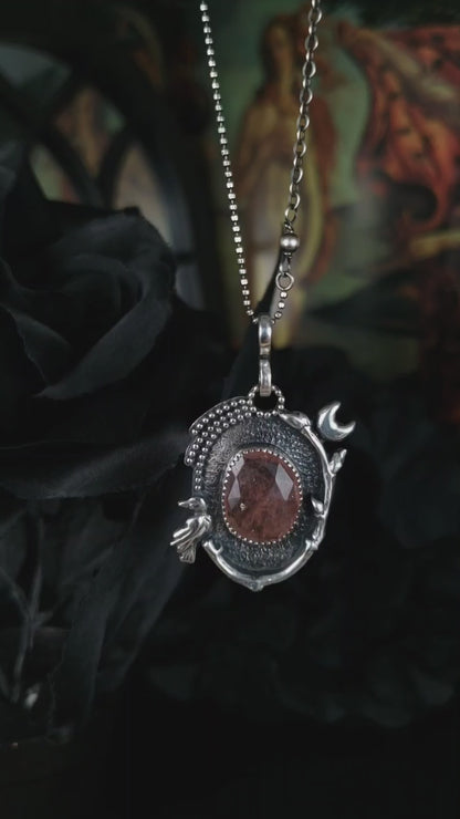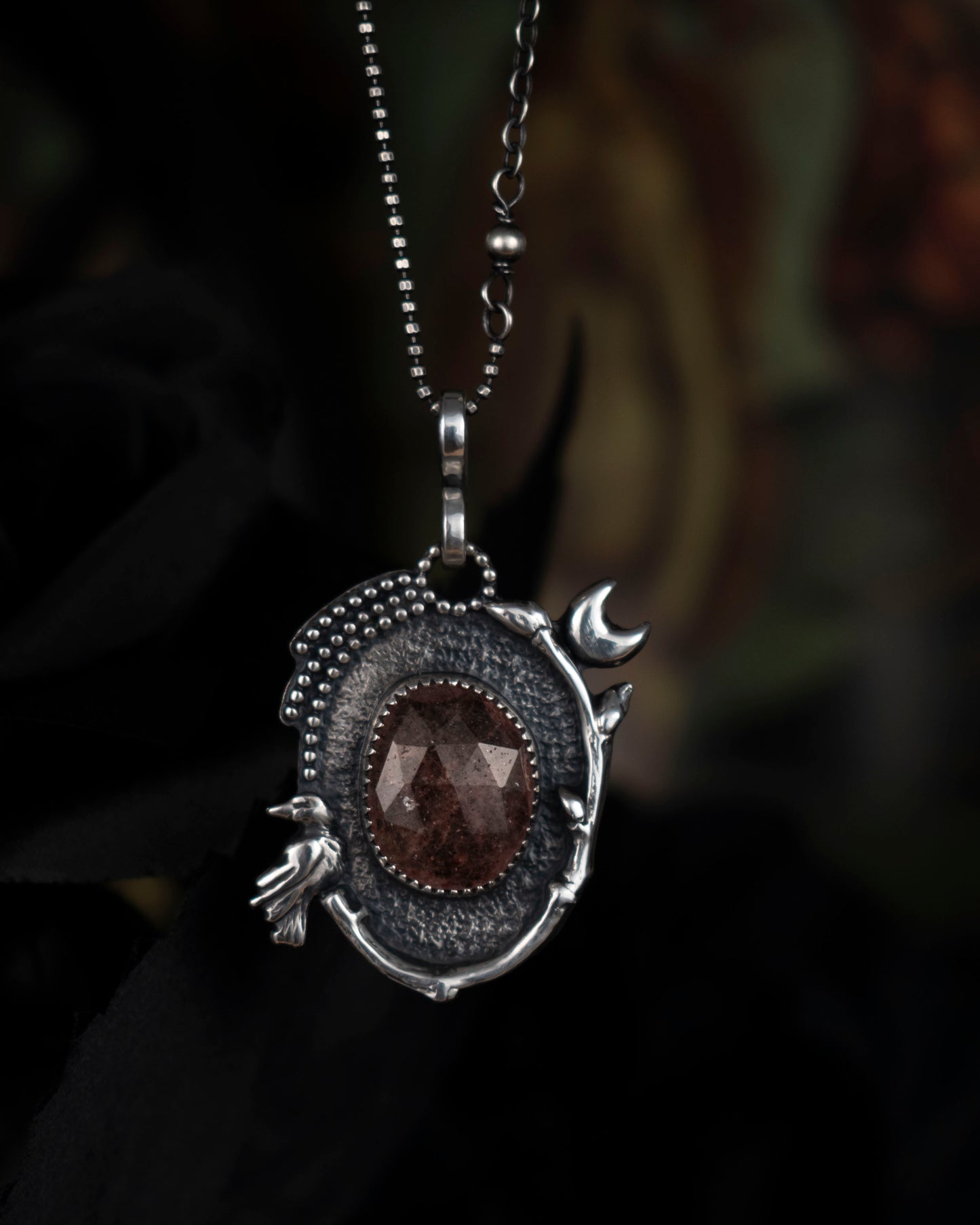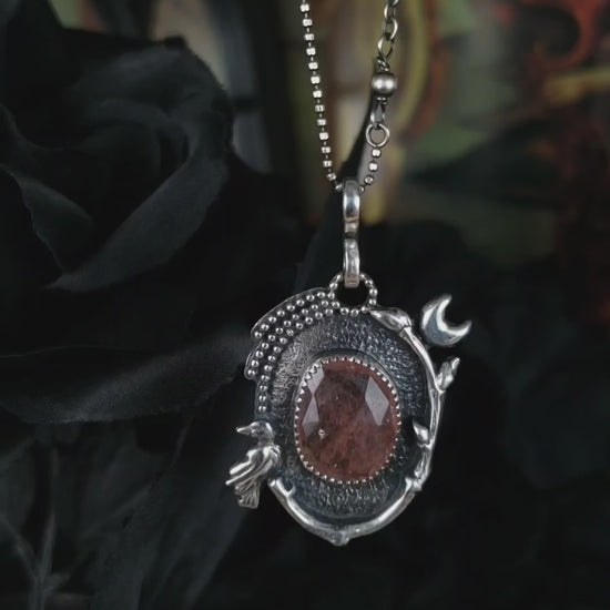 EKRJ870 Pink Strawberry Quartz & Crow Necklace