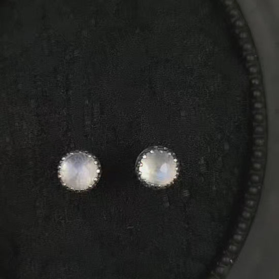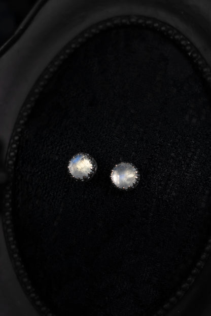 EKRJ940 Natural Rainbow Moonstone Minimalist Stud Silver Earrings