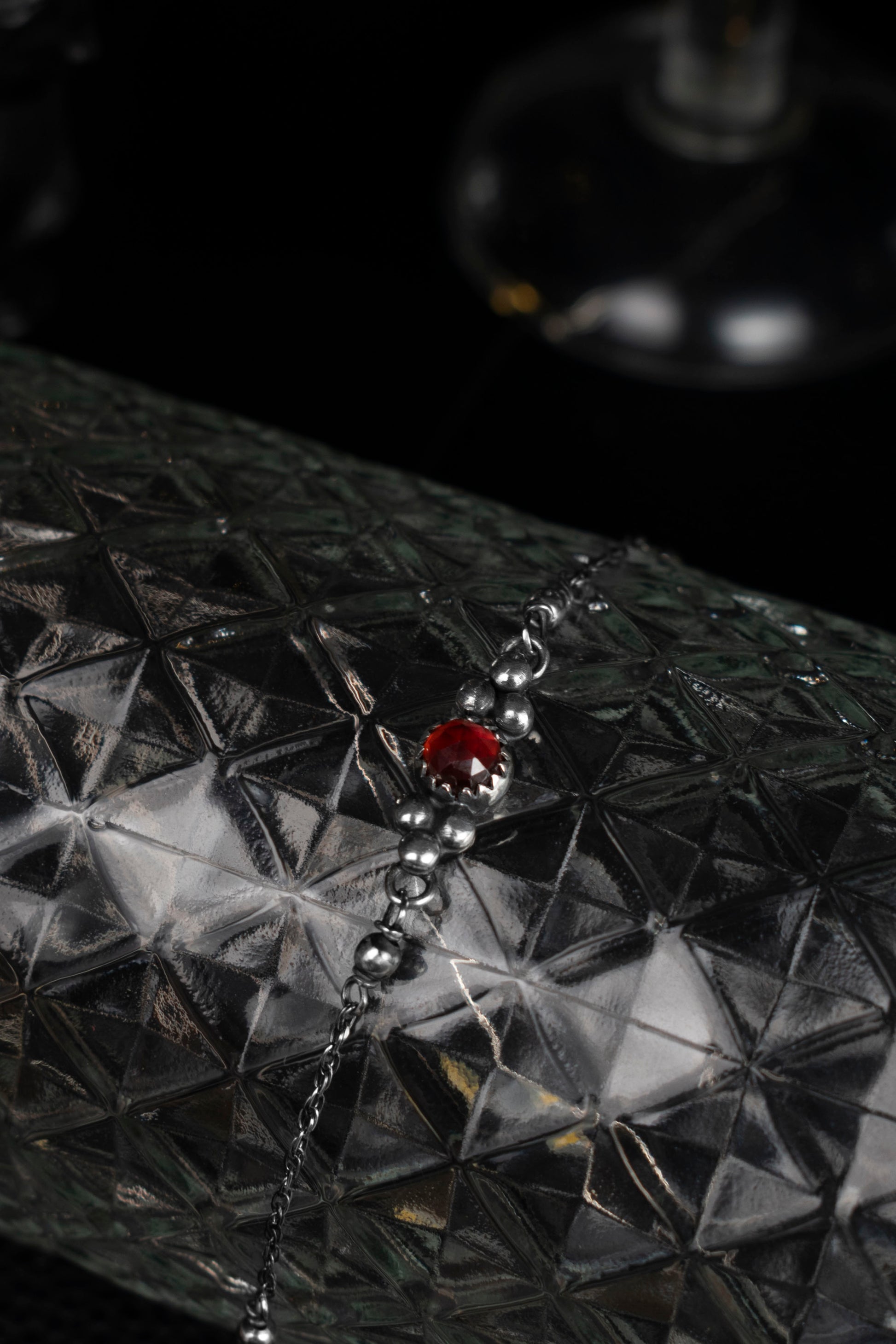 EKRJ943 Red Garnet RoseCut One-of-a-kind Handmade Silver Bracelet