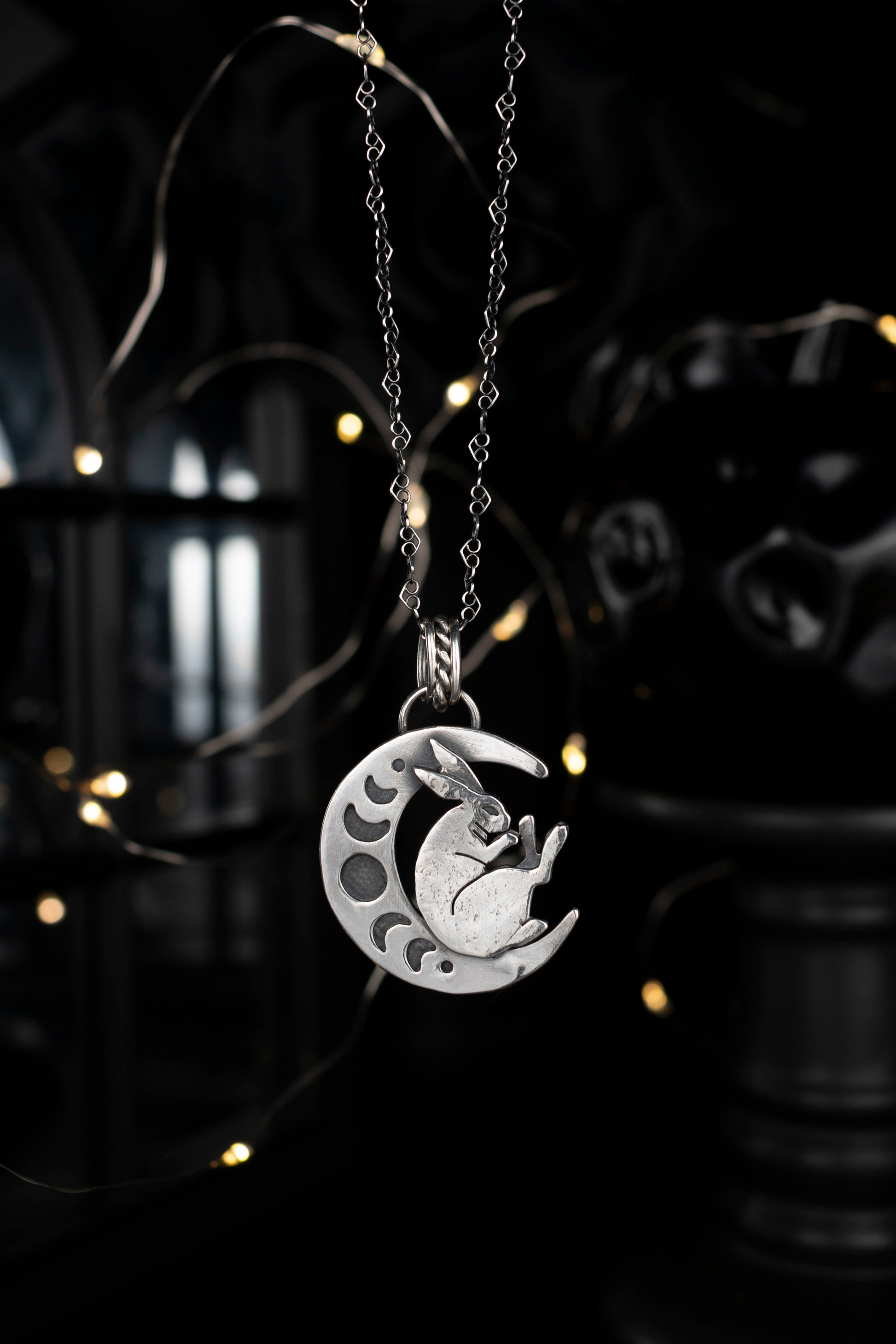 EKRJ982 Moon & Hare One-of-a-kind Handmade Silver Necklace